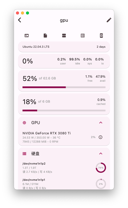 | 仓库地址 | https://github.com/lollipopkit/flutter_server_box| 文档 | https://github.com/lollipopkit/flutter_server_box/wiki | |